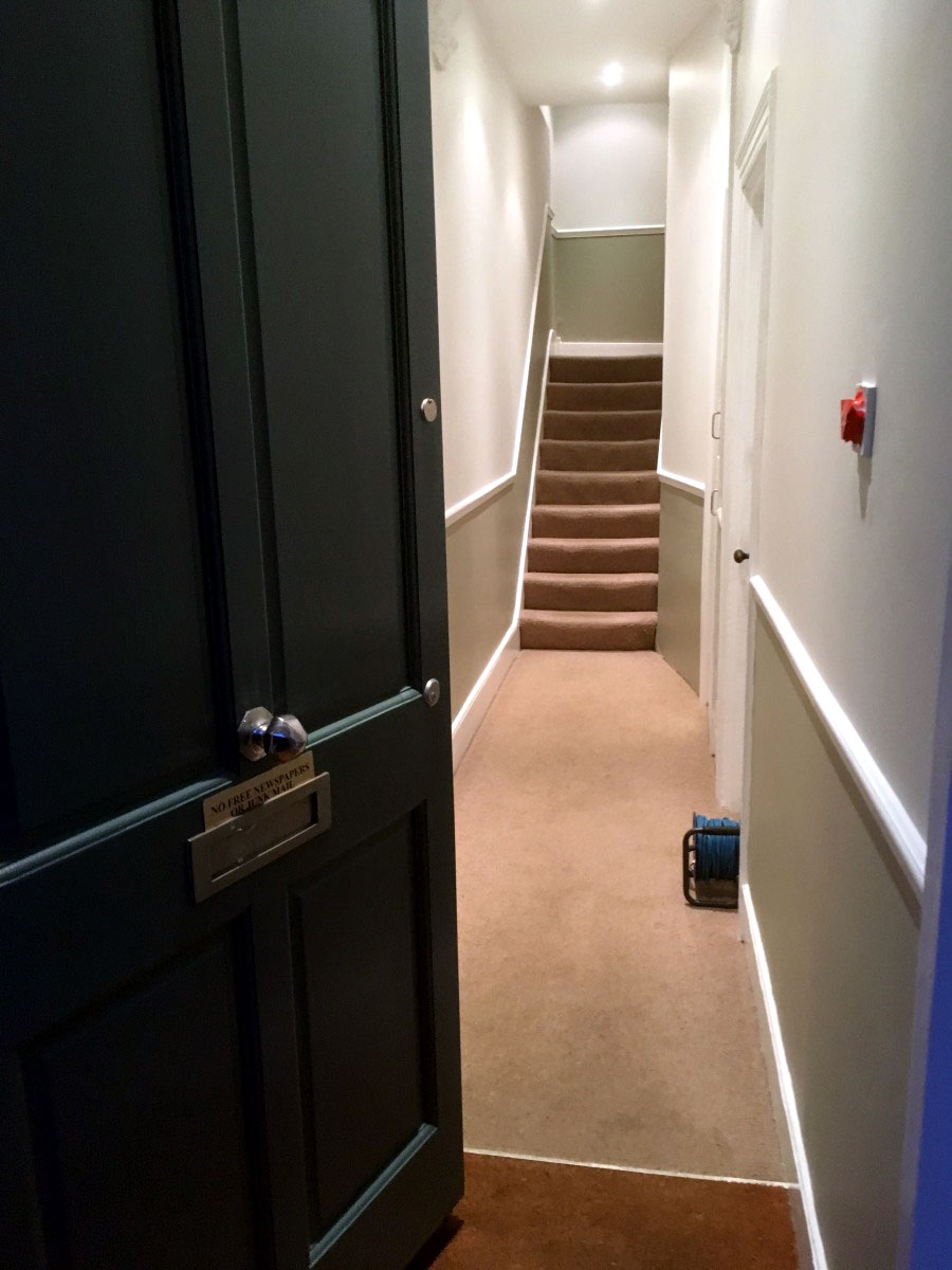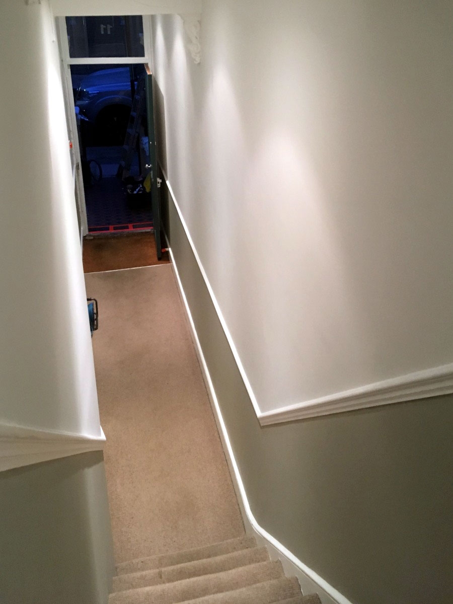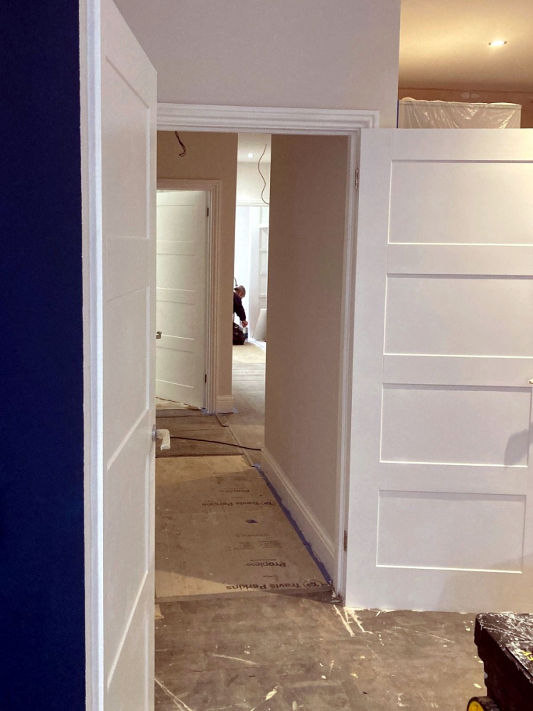 Interior painting and decorating of all walls, ceilings and woodwork in a newly built 4 flat apartment block in London